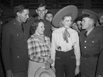 Texas State College for Women; Soldiers; Military uniforms; Military Camps; Cowgirls; Costumes; Crowds; Fort Wolters (Tex.); Turner, Jay Low; Snyder, Helen Ann; Scarves; Handkerchiefs; Western Attire; Eichbaum, Jack; Linker, Rube
