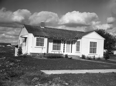 Exterior shot of the newly built white clapboard construction house at 4424 Birchman Avenue. Published in Fort Worth Star-Telegram morning edition November 9, 1941.