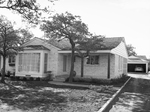 Exterior view of the newly constructed house of Mr. and Mrs. Elbert Gunn in the Crestwood neighborhood. The exterior of the dwelling is of hand cut Granbury stone. There are several trees in the front yard. Published in Fort Worth Star-Telegram morning edition November 9, 1941.