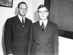 A. M. Howsley, left, and D. C. McCord, both of Albany, Texas. They are both wearing suits and eyeglasses. Their ranch in Throckmorton County, Texas, is one of the busiest sites of oil developments in the county. Star-Telegram Morning Edition November 9, 1941