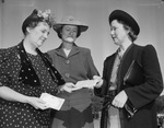 Mrs. J. Bob White, right, president of Birdville, Texas Home Demonstration Club. Mrs. Frank S. Naugle, left, and Miss Lucy Lee Maynard.