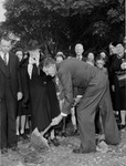 Rev. R. C. Moore, pastor of Fort Worth Baptist Temple, at groundbreaking ceremony of new church while his 84-year-old mother (right), Armintia Moore, watches.