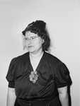 Miss Lillian McReynolds, teacher at D. McRae School, and vice president of the North Texas State Teachers College ex-students association. Woman in dark dress and belt with a large brooch, comprised of large flat circles and smaller beads, attached to the bodice. She also wears a hat with netting, octagon glasses and a round earring is visible in her left ear. Published evening edition, Fort Wort Star-Telegram, Nov. 19, 1941.