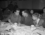 Layman, Ellis; Layman, C.H.; Layman, Richard Lee; Thanksgiving Dinner; Newsboys; Talking; Conversation; Dinnerware; Tableware; forks; Knives; Drinking glasses; Pies; Coffee