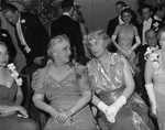 Annual Assembly Ball at Fort Worth Club; Mrs. J. B. Googins (center) with debutante granddaughter Mary Ruth Googins, University of Texas at Arlington (U. T. A.), (left); and Mrs. H. H. Durston on right, 11/21/1941.