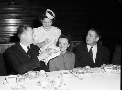 Lee, Alton B. (Mrs.); Lee, Alton B.; Wiley, M. W.; Williams, Virginia (Miss); Dresses; Waitresses; Dinners; Celebrations; Tableware; Glassware