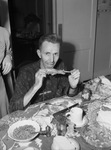 The police department's second platoon, under the direction of Capt. Ben F. Griffith, treated its members on the casualty list. Radio Patrolmen Guy T. Barbee is shown eating a steaming hot Thanksgiving dinner delivered to his home. Published Fort Worth Star-Telegram Morning Edition November 28, 1941.