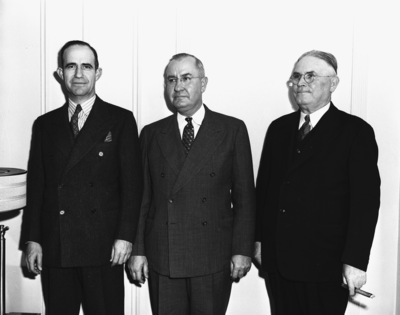 Texas State Parks Board members include (left to right) J. D. Sanderfer Junior, Breckenridge, Texas; John V. Ash, Bastrop, Texas T. C. Ashbord, Maud, Texas.