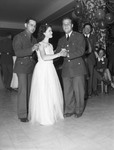 United Service Organization (U. S. O.); Shurkin, Morris Jerry (Pvt.); Kuttner, Stanley (Pvt.); Evan, Eldora McKinzie (Miss); Dances; Parties; Holidays; Dresses; Military personnel; Military uniforms; Hotel Texas (Fort Worth, Tex.)