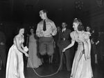 United Service Organization (U. S. O.); Williams, Chuck (Pvt.); Jumping rope; High, Bronson; Green, Bernice; Jump rope; Dresses; Military uniforms; Military personnel; Parties; Dances; Holidays; Hotel Texas (Fort Worth, Tex.)