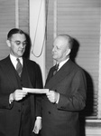 Otto W. Monning handing check to Walter B. Scott, chairman of the local Red Cross chapter.