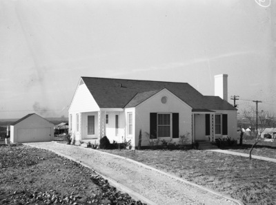 The new home at 2570 Boyd Avenue, Fort Worth, Texas is open for visitors. The house has a side porch and a gravel driveway on the left leading to a detached garage at the back. It has a few plants and a tree in the front yard. Published in the Fort Worth Star-Telegram morning edition, December 21, 1941.