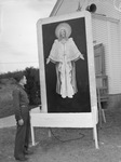 Camp Wolters in Mineral Wells, Texas is preparing for Christmas and a big celebration. Here is one of the new illuminated panels, depicting the story of Christ, which have been place in front of the six camp chapels. Studying the display is Lieutenant H. D. Knight. He is dressed in his military uniform. Published in the Fort Worth Star-Telegram morning edition, December 21, 1941.