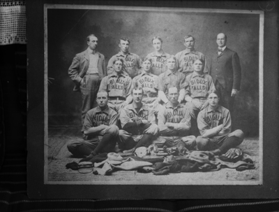 In 1908, Billy Disch was a member of the Sioux Falls baseball team. Shown here is a cherished old picture of the team with the then young star second from the left in the back row. Disch played with many teams, including Fort Worth and other Texas League clubs, in his playing days.