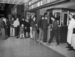 Christmas scenes. Christmas Eve celebrators going to the movies for pleasant relaxation after the rush of Christmas week business and shopping. Shown is a line of people at a theater ticket booth to buy tickets. Published in the Fort Worth Star-Telegram Morning Edition, December 25 1941.