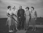 Photographed here at the Sportsman's Rod and Gun Club were a group of shooters and Mr. and Mrs. Fred Etchen of Wichita, Kansas, who teach safety with guns as well as how to shoot targets. Shown here in the picture are left to right, Mrs. J. M. Loffland, Mrs. Lee Armer, Mr. Fred Etchen, Mrs. F. Kirk Johnson and Mrs. Fred Etchen.