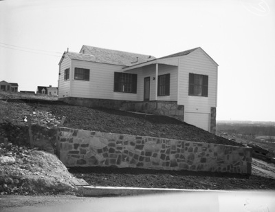 The new home at 2012 Fielder Street, Fort Worth, Texas is open for visitors. The house sits on a hill. The lower level comprises the garage. There are steps leading to the front door on the top level. The property has a stone retaining wall in the front matching the stone on the sides of the lower level. The yard is sloping at an angle and there is no grass or plants. Published in the Fort Worth Star-Telegram morning edition, January 4, 1942.