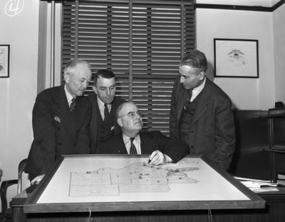 Defense workers (left to right) August Cohn of Oklahoma City, Oklahoma, Uel Stephens (seated), L. H. Strock, Oklahoma City, Oklahoma and Chester M. Rutledge, of Hutchinson, Kansas.