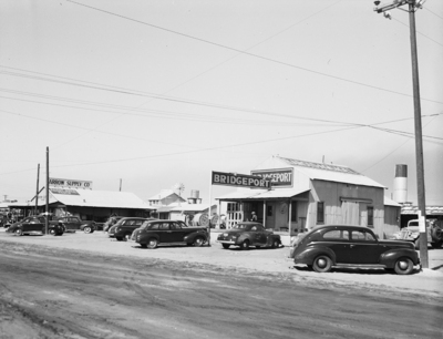 A view of the main street in Denver City, fast-growing municipality in the North Permian Basin of West Texas. the city is in Southern Yoakum County, approximately n the center fo the Wasson pool, second largest in the State, covering 55,000 acres of poven oil land. There are many shops lining the street. Published in Fort Worth Star-Telegram morning edition May 1, 1940.