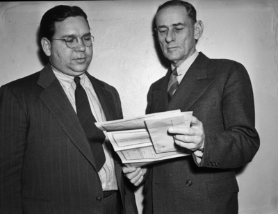 Painters Union Local No. 318. Buying defense bonds. Left to right, Raymond Cadwallader and L. E. Eager.
