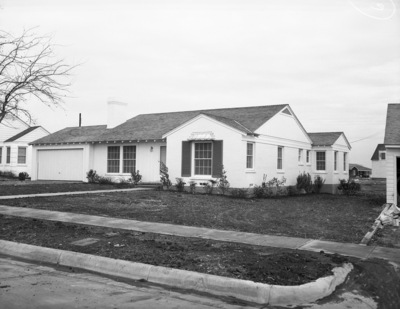 The new home of J. Stafford Page is at 3652 Monticello Drive, Fort Worth, Texas. The brick house has large windows in the front, and an attached two-car garage. There are a few young plants in the yard. Published in the Fort Worth Star-Telegram morning edition, February 1, 1942.