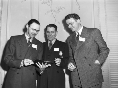 Southwestern Congress of Optometry meeting. Left to right, Dr. W. A. Petty, Lubbock; Dr. J. E. Galloway, Wichita Falls, and Dr. J. E. Galloway, Wichita Falls, and Dr. W. F. Baber, Vernon.