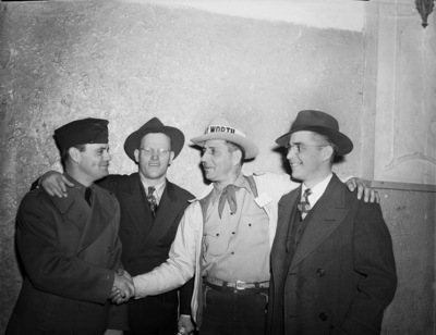 Left to right, Captain Sidney F. Lahourcade, L. R. (Cotton) Burton of Brownwood, Texas, Herbert Joseph and Jimmy Moore.