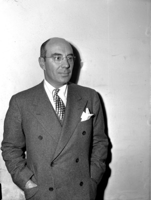 The 1942 Golden Gloves State Tournament is being held at Will Rogers Memorial Coliseum in Fort Worth, Texas. Serving as chairman of the committee which will pass on Golden Glove eligibility matters in the state tournament is George Whitman. The committee will be composed of one representative from each district. Mr. Whitman is president of the Tarrant County Association of the Amateur Athletic Union (AAU). He is standing against a wall, dressed in a double breasted suit with a pocket square.