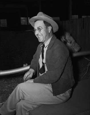 Southwestern Exposition and Fat Stock Show participant R. E. Cross of Rosanah Hereford Ranch at Troup, Texas, arrived early to supervise the unfolding of his show herd.