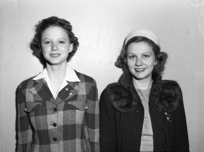 High school seniors given complimentary enrollment in Carnegie School. Left to right, Elizabeth Youngblood, and Mavis Cobb.