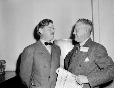 Bankers convention. Frank Morris Jr., left, of Gainseville, Texas, and A. V. McQuiddy, of Canadian.
