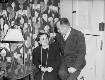Democrats attending the President George Washingon Birthday dinner at the Hotel Texas. Mrs. H. H. Weinert of Seguin, Texas, and E. B. Germany, Dallas, Texas.
