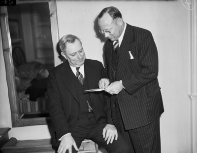 Democrats attending the President George Washingon Birthday dinner at the Hotel Texas. Left to right, Marian S. Church, and D. Harold Byrd, both of Dallas, Texas.
