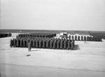 Sheppard Field graduates shown lined up on the field as army planes from Randolph Field fly overhead. Photograph of soldiers in their uniforms at graduation ceremony. Published in The Fort Worth Star-Telegram Morning Edition February 25, 1942.