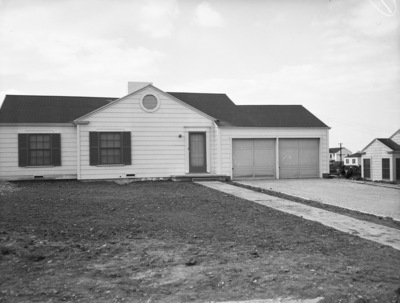 The new home at 2816 Westridge Road in the Ridglea North Addition of Fort Worth, Texas is open for visitors. The house has a simple modern architecture and has an attached two-car garage. The yard is not established. Published in the Fort Worth Star-Telegram morning edition, March 1, 1942.