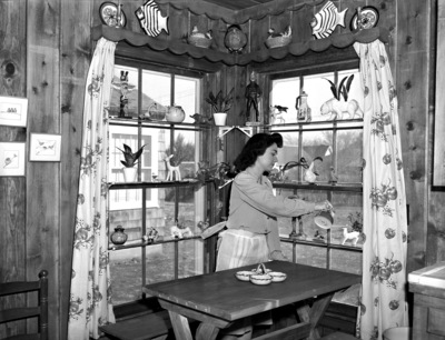 Thompson, Frank (Mrs.); Windows; Plants; Kitchens; Aprons; Fulwiler, Frances Ann (Miss); Draperies; Collectibles; Tableware