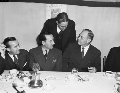 State Representative Clinton Kersey of Bridgeport, standing behind Fort Worth Burton, left, and Governor Coke Stevenson.