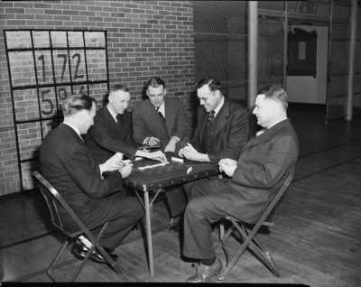 W. C. Stripling Junior High School.. Practice before the Games Party.. Left to right, Herbert D. Clark, Eddie Dyer, Bill O'Grady, Early Allen and Harry Feik.
