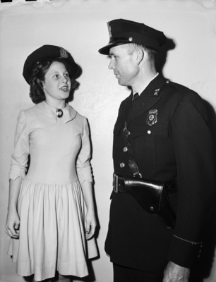Delores Joe, 13 year old radio entertainer, and radio patrolman E. C. Purvis.