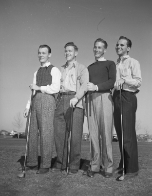 Texas Christian University golfers (left to right) Benton Beasley, of Ennis, Texas, Dub Rankin, Fort Worth, Texas and Wallace Fitzgerald, Ennis, Texas