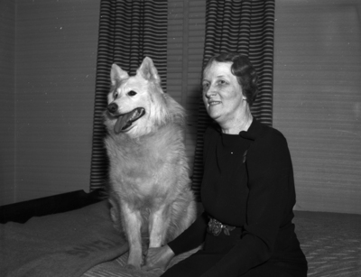 Mrs. E. N. Wentworth of Chicago, Illinois, shown with her Samoyede dog, "Kascha," a breed of Siberian Spitz.