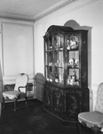 Image shows seventeenth and eighteenth century English manor houses provided the inspiration for the home of Mr. and Mrs. Stanley A. Thompson. The architecture is late Elizabethan and the interior and furnishings are eighteenth century, with adaptations. Family portraits are used as integral parts of the interior decoration. Two chairs and a cabinet are shown. Published in the Fort Worth Star-Telegram Sunday edition April 28, 1940.