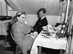 Ice-Capades. Belita Turner, queen of the ice, in her dressing room with Ensign G. H. Sundquist, Hensley Field.