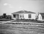 New home of C. R. Hamann, at 4036 Locke Avenue, Fort Worth, Texas. This is a one-story house with an entrance door, several windows and a chimney. The front yard is not established yet. Published in the Fort Worth Star-Telegram morning edition, April 19, 1942.