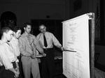 Lieutenant R. R. Howerton of the police department explaining the air raid system to Carter Riverside High School students Donald Hansen, Jackie Murray, and J. B. Clark.