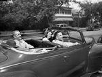 University of Texas. Defense efforts. Mary Louise Wood of Big Spring, driving. Corporal Kelton H. Spiller, Austin, Texas (in front seat) and Private Robert Lackey, Dayton, Ohio.