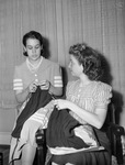Our Lady of the Lake College Incarnate Word College. Our Lady of the Lake College girls knitting, Betty Barnes, right, and Jerry Pozell of Laredo.