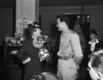 Lady Halifax, the British ambassador's wife, saw much and met many during her stay in Fort Worth Friday. She is chats interestedly with Private John Fitzmaurice at the USO center in Hotel Texas. The soldier is from Oak Park, Illinois and is the son of Irish-born parents.