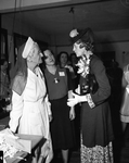 Mrs. Lena M. Kelly, left, and Lady Halifax are having a discussion. In the background is a small group of unidentified women.
