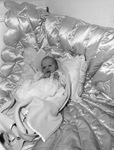 Sid Richardson Bass, two weeks and five days old, is the son of Mr. and Mrs. Perry Richardson Bass, 5820 El Campo Avenue. He is wrapped in a blanket and lying on a pillow on a satin comforter.